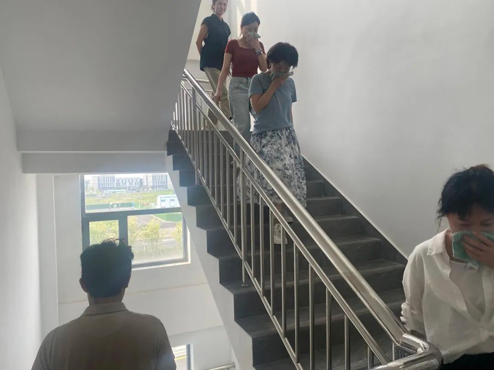 此次演練模擬辦公區(qū)域突發(fā)火災(zāi)場(chǎng)景,重點(diǎn)圍繞人員疏散、初期滅火和設(shè)備實(shí)操等環(huán)節(jié)展開(kāi)。15時(shí)30分,綜合樓消防警報(bào)驟響,消防卷簾自動(dòng)落下,應(yīng)急照明亮起,整個(gè)綜合樓瞬間進(jìn)入模擬火場(chǎng)狀態(tài)。在消防總指揮和消防片長(zhǎng)、樓長(zhǎng)的指組織下,樓內(nèi)全體人員根據(jù)應(yīng)急廣播指引,沿預(yù)定路線迅速有序撤離至室外集結(jié)點(diǎn),與此同時(shí),安保人員第一時(shí)間撥打119報(bào)警電話,微型消防站迅速啟動(dòng)消防設(shè)施,開(kāi)展火場(chǎng)控制和初期滅火等工作。最終,所有人員安全撤離。