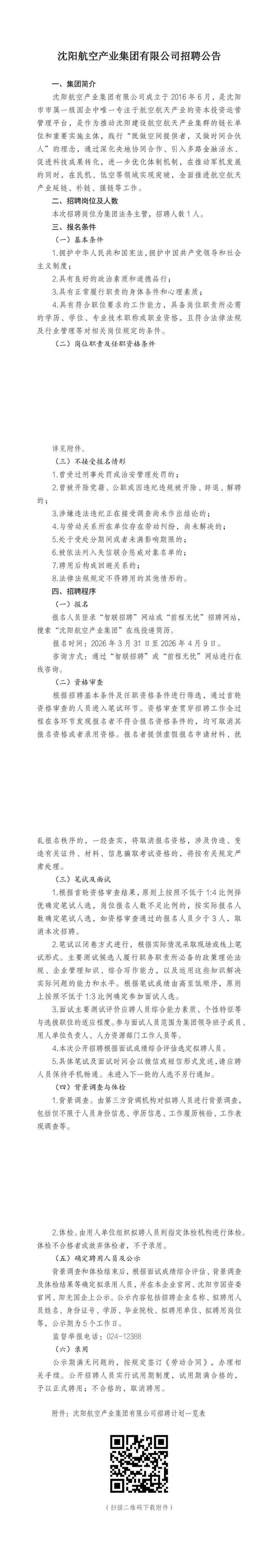 沈陽航空產業(yè)集團有限公司所屬子企業(yè)招聘公告
